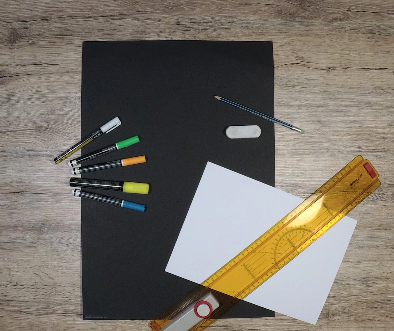 - schwarzen Tonkarton (zum Beispiel in A2)