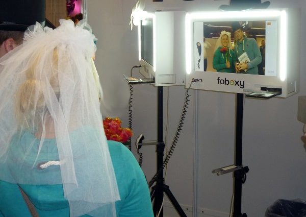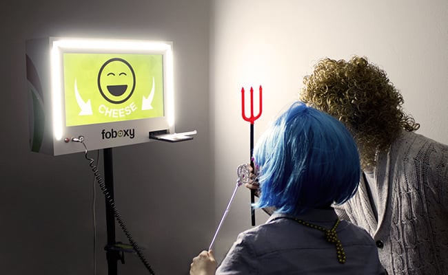 Bei foboxy handelt es sich um ein offenes System, das keine Kabine oder feste Hintergründe benötigt. Wir empfehlen die Box mit einem Abstand von ca. 3m gegen eine Wand zu richten. Wenn die Location es hergibt und die Gäste nicht allzu dicht an der Box dran sitzen, kann die Box aber auch in den Raum gerichtet werden.
