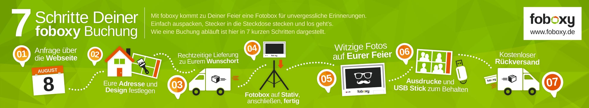 Für den Fall, dass Deine Feier nicht wie geplant stattfinden kann, bietet Dir foboxy eine 100%ige Verschiebegarantie an – ohne weitere Kosten!